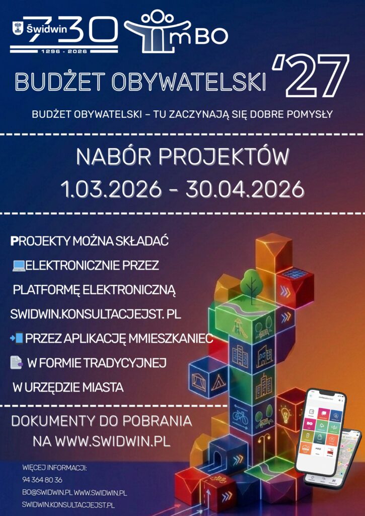 Więcej informacji oraz dokumenty do pobrania znajdziecie na stronie www.swidwin.pl