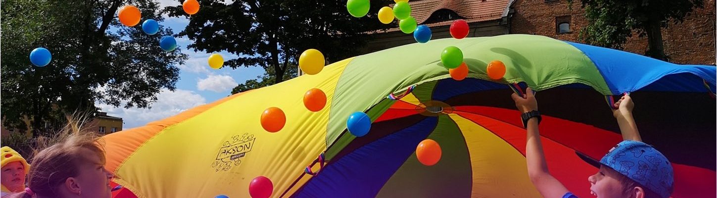 Rozpoczynamy o godzinie 15:00 – zabawy z chustą animacyjna, tor przeszkód, bańki xxl i wiele innych zabaw.