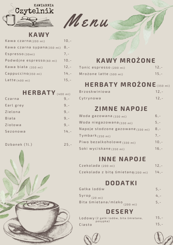 Zapraszamy do zapoznania się z menu kawiarni: