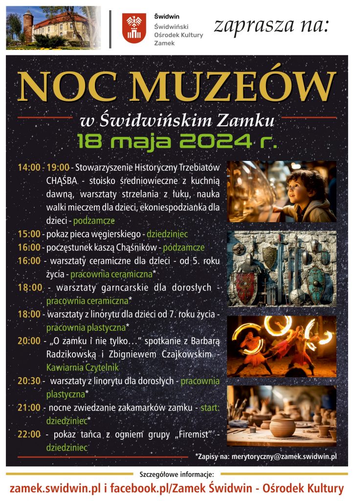 *Na warsztaty i nocne zwiedzanie obowiązują zapisy na: merytoryczny@zamek.swidwin.pl