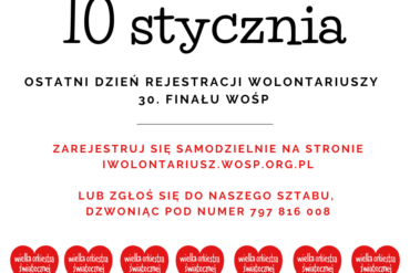 10 stycznia – ostatni dzień rejestracji wolontariuszy 30. Finału WOŚP