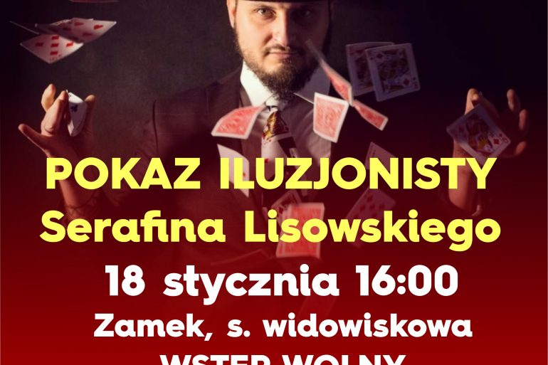 Kolejną atrakcją podczas ferii zimowych będzie pokaz iluzjonisty Serafina Lisowskiego, który wystąpi dla Was w czwartek 18 stycznia o godzinie 16:00 w sali widowiskowej świdwińskiego Zamku. Wstęp wolny!