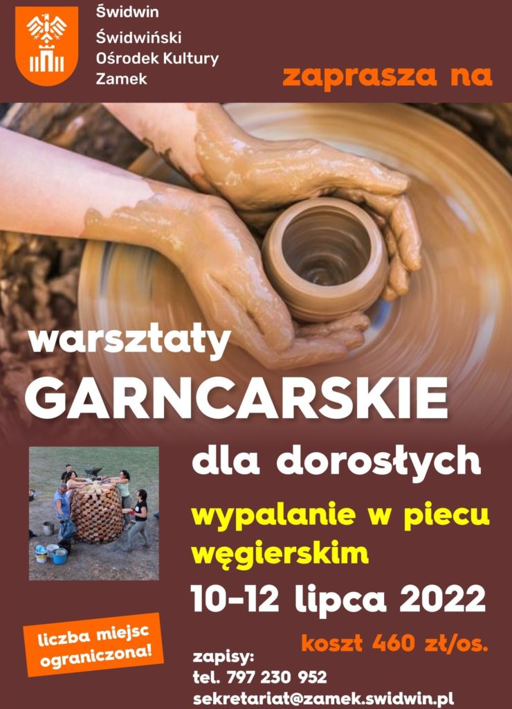 Prosimy o podanie w zgłoszeniu imienia i nazwiska oraz numeru kontaktowego, a także wyraźne wpisanie, o jakie warsztaty chodzi. Najlepiej zatytułować email: Warsztaty garncarskie lipiec zgłoszenie.