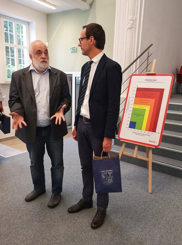 W środę odwiedzili nas goście z Berlina – lekarze z jednego z największych szpitali w Europie, kliniki Charité: profesor Jalid Sehouli – dyrektor medyczny, profesor Matthias David – dyrektor zarządzający oraz doktor Jacek Grabowski – kierownik opieki ambulatoryjnej w tym szpitalu. Wizyta miała związek z przygotowaniami do zaplanowanej na połowę października konferencji organizowanej przez Starostwo Powiatowe w Świdwinie, w czasie której Centrum Nauki Cordis zostanie oficjalnie placówką im. Rudolfa Virchowa. Virchow, urodzony w Świdwinie lekarz i antropolog, współpracował z kliniką Charité i jest w Niemczech postacią szeroko znaną. W tym roku, właśnie w październiku, przypada dwusetna rocznica jego urodzin.Naszym gościom towarzyszyła ekipa filmowa, która dokumentowała pobyt oraz przygotowania do otwarcia Centrum Nauki i samej konferencji. Panowie spotkali się między innymi z Panem Wicestarostą, Zdzisławem Pawelcem, odwiedzili siedzibę CN Cordis oraz komnaty muzealne w zamku, gdzie cześć stałej ekspozycji to fotografie, publikacje i pamiątki związane z Rudolfem Virchowem, odbyli również krótki spacer po mieście.
