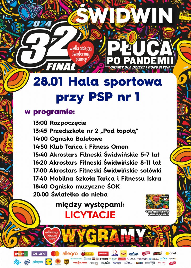 Oto godzinowa rozpiska tegorocznego Finału WOŚP, który po raz pierwszy odbędzie się w Hali sportowej przy PSP nr 1.