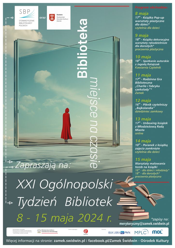 Prezentujemy Państwu program XXI Ogólnopolskiego Tygodnia Bibliotek, który odbywać się będzie w dniach 8-15 maja 2024 r. w Zamku.