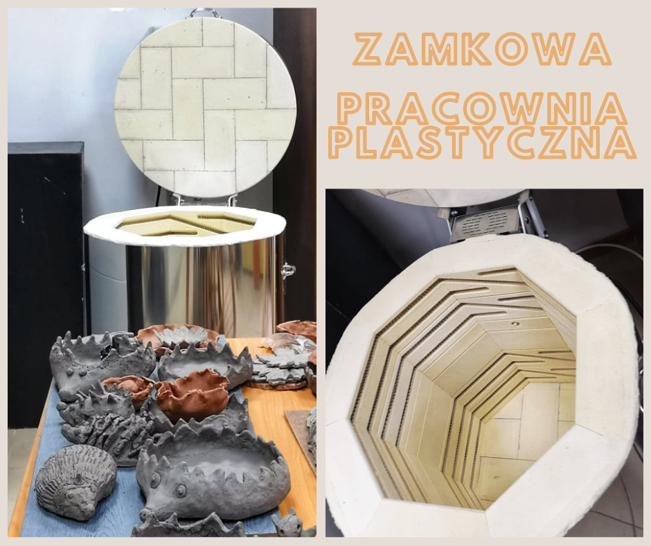 Po pierwszym miesiącu umiejętności uczestniczek i uczestników są już naprawdę imponujące i wiemy, że te zajęcia sprawiają dzieciom i młodzieży mnóstwo radości. Dlatego do remontowanej pracowni plastycznej zakupiliśmy profesjonalny piec do wypalania ceramiki. Tak, to ten tajemniczo wyglądający kocioł widoczny na zdjęciach.