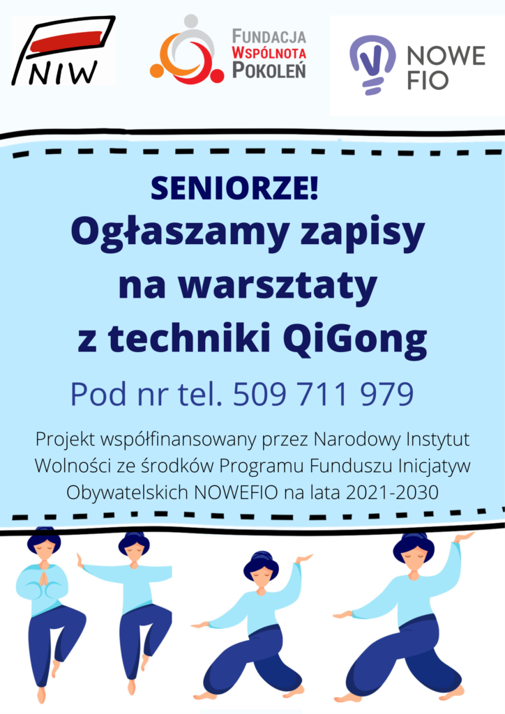 Grzecznościowo udostępniamy informację o warsztatach z techniki QiGong w Klubie Senior+.